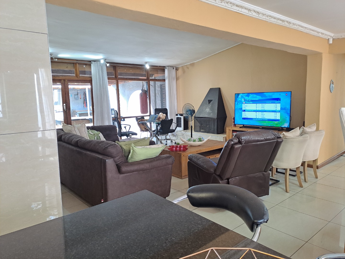 Step outside to a covered braai area overlooking the swimming pool, ideal for year-round entertaining.