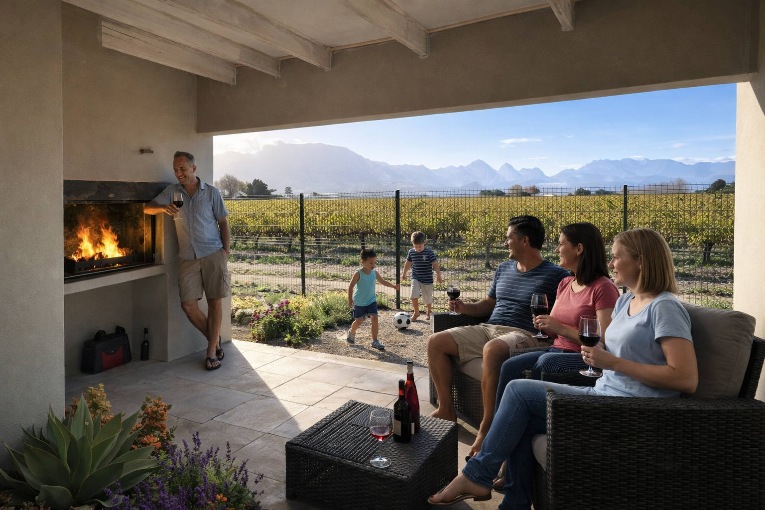 The complex has beautiful views of the Boland vineyards and mountains. The estate has been designed with green areas to bring harmony and peace to the surroundings. Come and feel the tranquillity of the country side! Contact us for further information and viewing appointments.