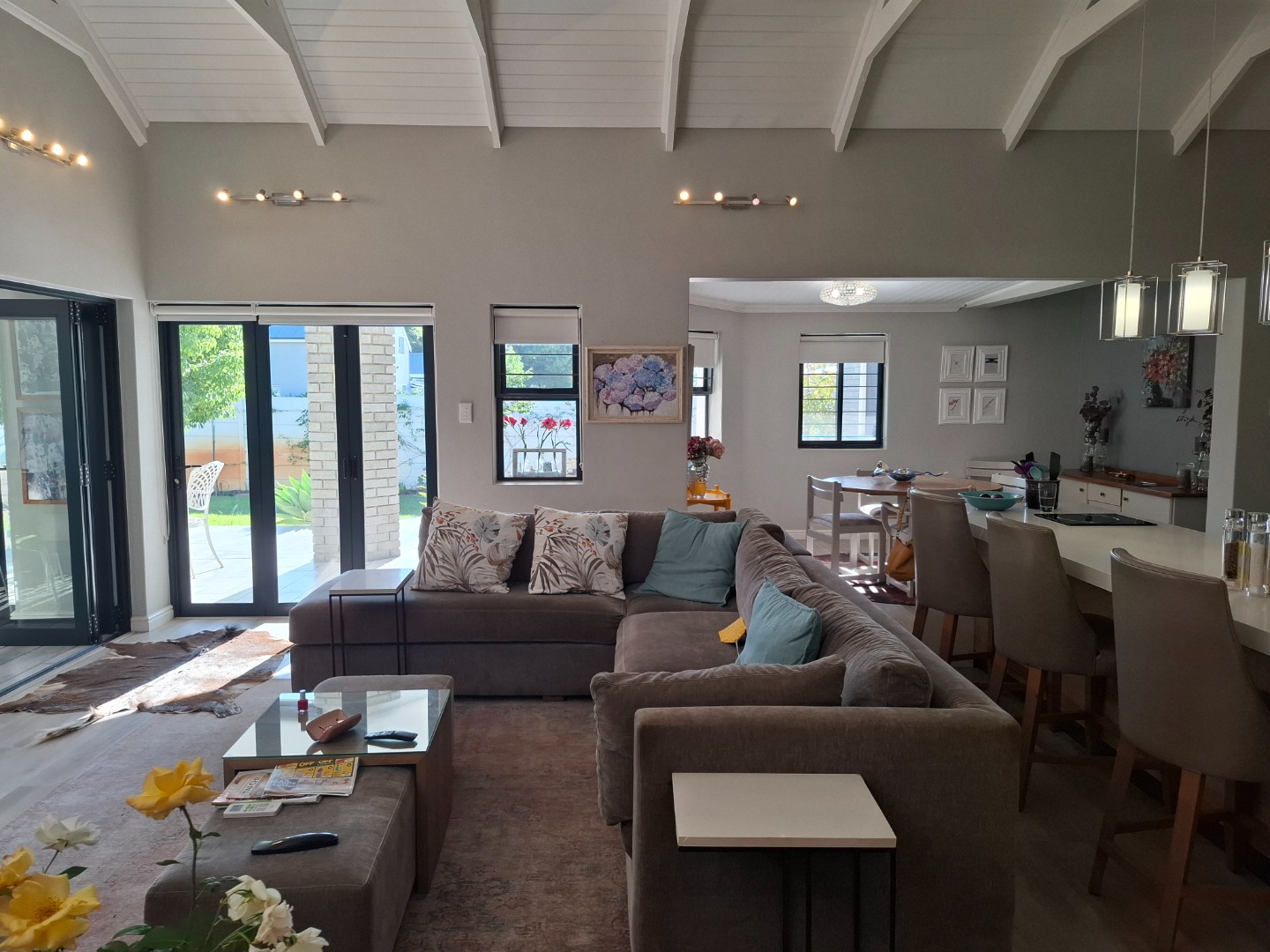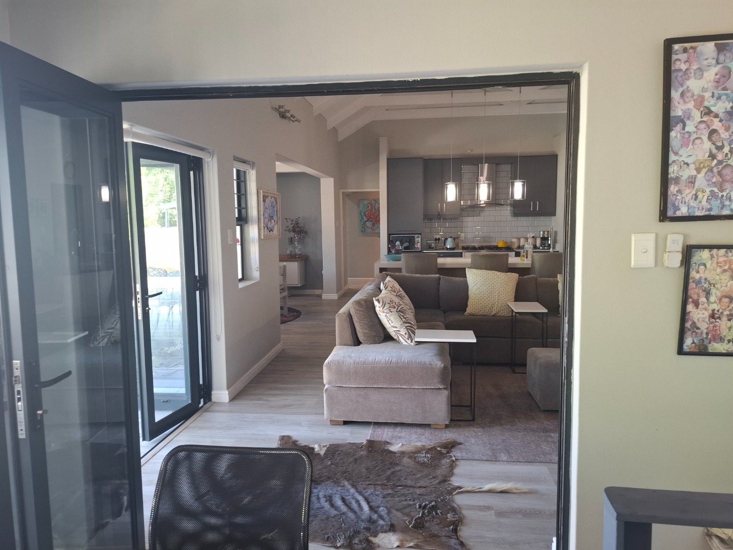 This inviting 3-bedroom, 2-bathroom residence in Rawsonville offers a blend of country living and modern convenience within the picturesque Worcester Winelands. Situated in a peaceful cul-de-sac, this property boasts excellent kerb appeal and a welcoming entrance hall. The interior features an open-plan layout, seamlessly connecting the lounge, dining room, and a dedicated family TV room, perfect for both relaxation and entertaining. Air conditioning ensures comfort throughout the seasons, creating an ideal living environment. The home provides three comfortable bedrooms and two well-appointed bathrooms, catering to family needs. A dedicated study offers a quiet space for work or hobbies. The functional kitchen is ready for culinary adventures, while a separate laundry area adds to the home's practicality. Step outside to discover a generous 740 sqm erf, featuring a delightful deck and a built-in braai, ideal for outdoor gatherings and enjoying the scenic views. The property includes an irrigation system to maintain the grounds and ample paving. With two garages, parking is convenient and secure, and pets are welcome, making it a true family home. Security is well-addressed with an access gate, intercom system, burglar bars, and security gates, providing peace of mind. This home is also equipped for modern living with a gas geyser, a battery inverter for uninterrupted power, and fibre connectivity. Its wheelchair-friendly design ensures accessibility for all. Rawsonville, nestled in the heart of the Winelands, offers a tranquil suburban lifestyle with the charm of country living. Enjoy the serene surroundings and the convenience of being close to Worcester amenities. Key Features: * 3 Bedrooms, 2 Bathrooms * Open-plan Lounge, Dining Room, Family TV Room * Dedicated Study and Laundry * Air Conditioning and Gas Geyser * Battery Inverter and Fibre Connectivity * Deck with Built-in Braai * Two Garages and Paved Areas * Access Gate, Intercom, Burglar Bars, Security Gate * Wheelchair Friendly Design * Scenic Views in a Cul-de-sac Location