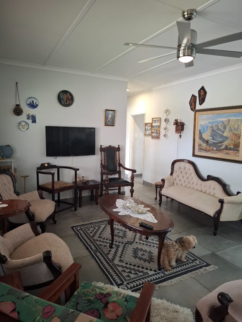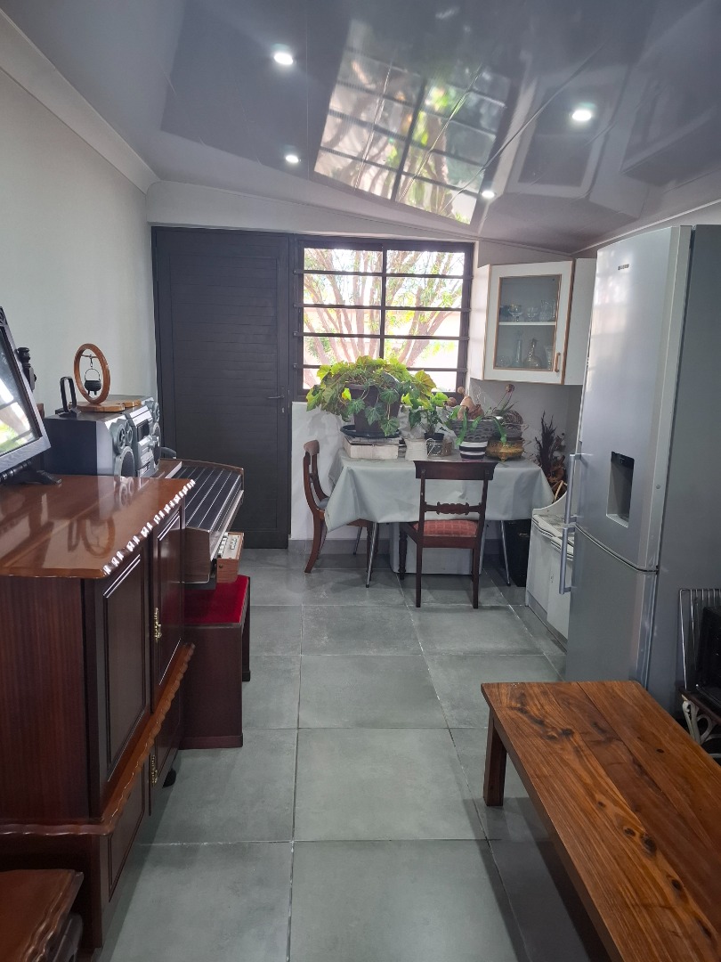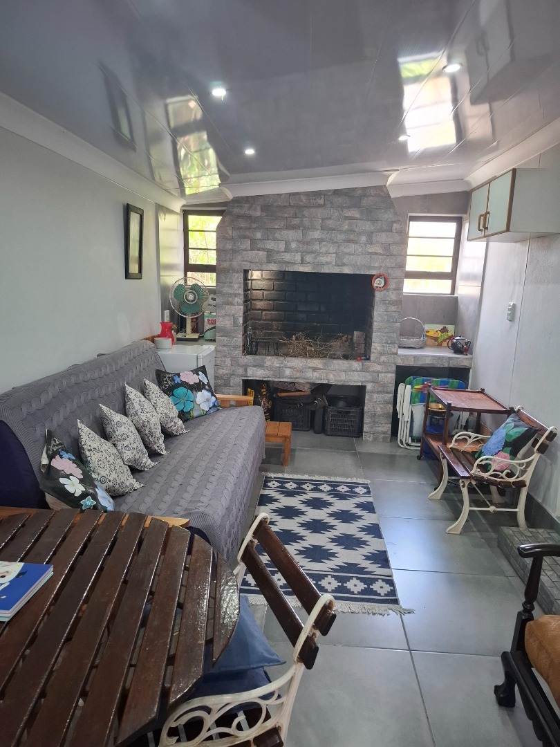 The inviting living room extends to an indoor braai room, the perfect space to relax and entertain friends and family. The kitchen is open plan and modern with gas hob and lots of work space with ample cupboards.
