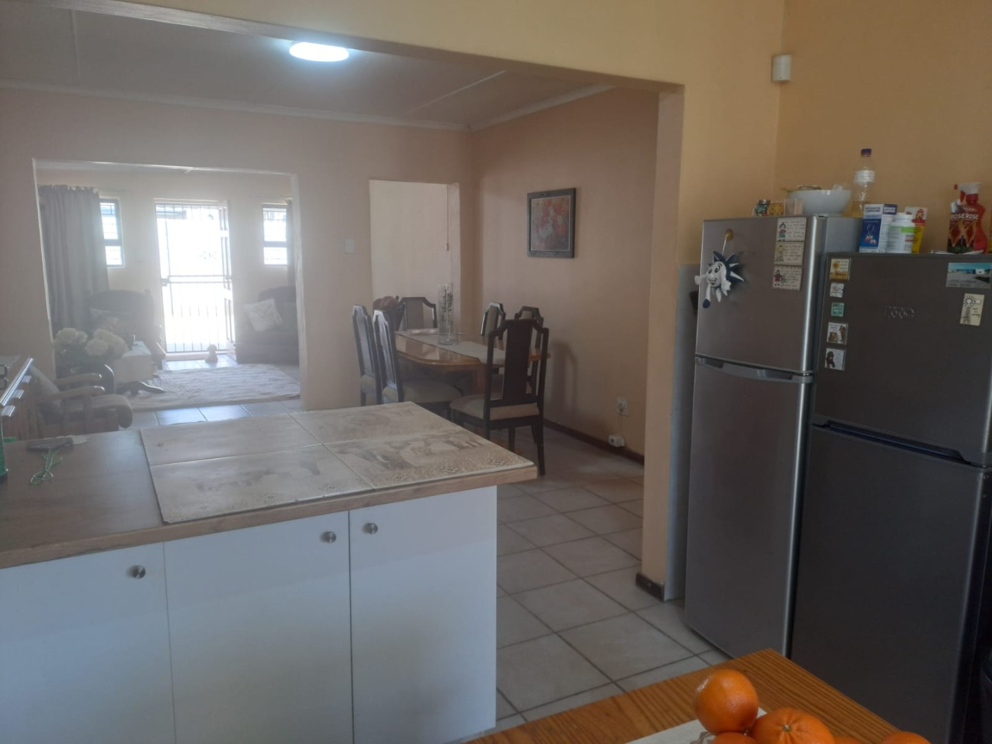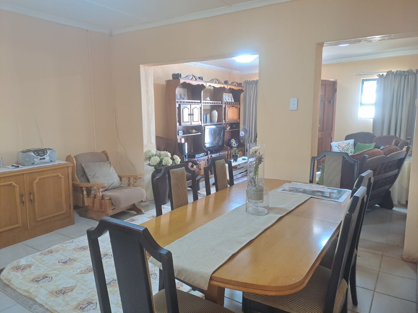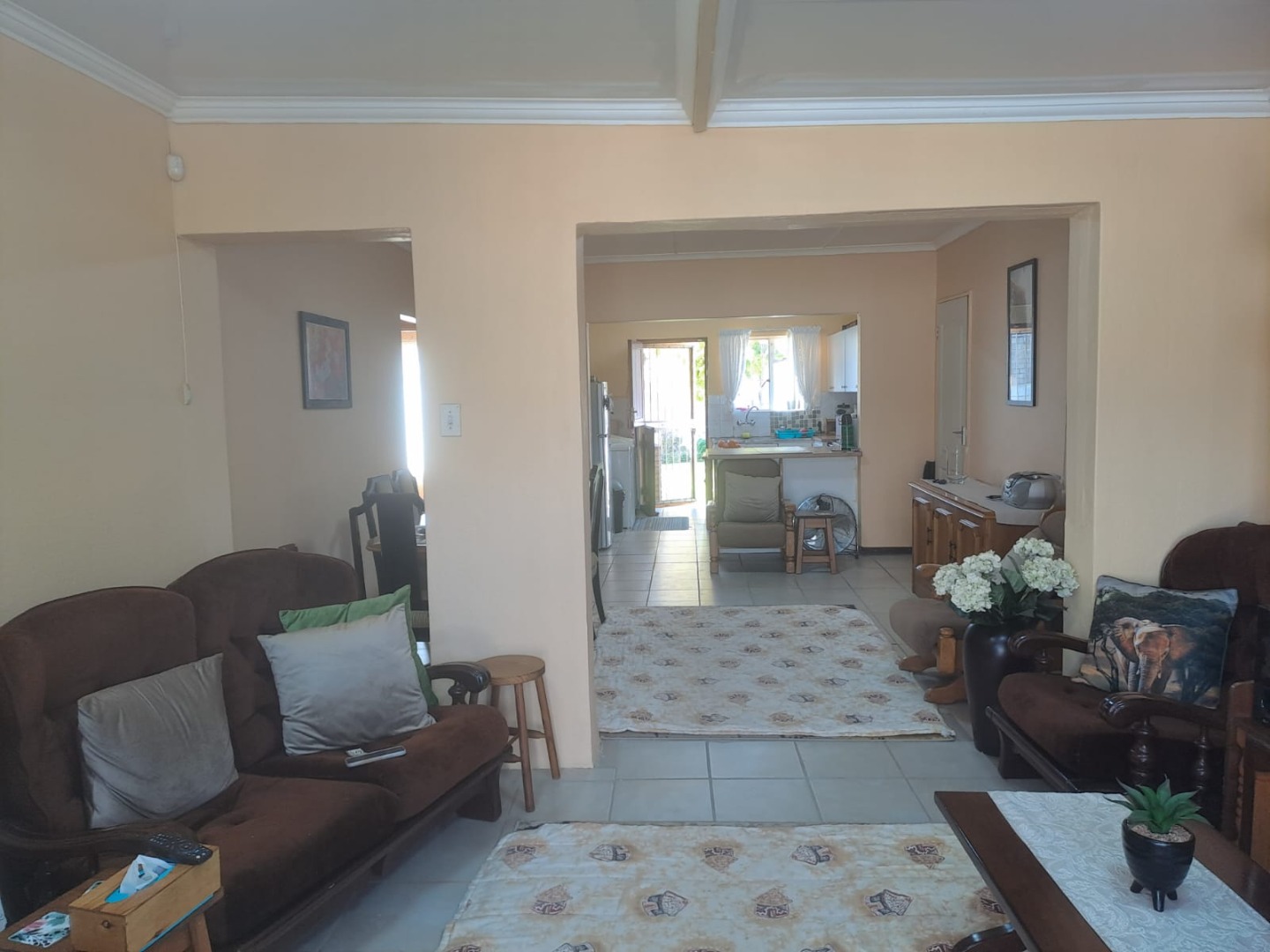 The third bedroom is situated outside the main house - ideal for guests, extended family or even a home office. The home features an inviting open-plan living area that flows into the dining room and kitchen, which is fitted with built-in cupboards.