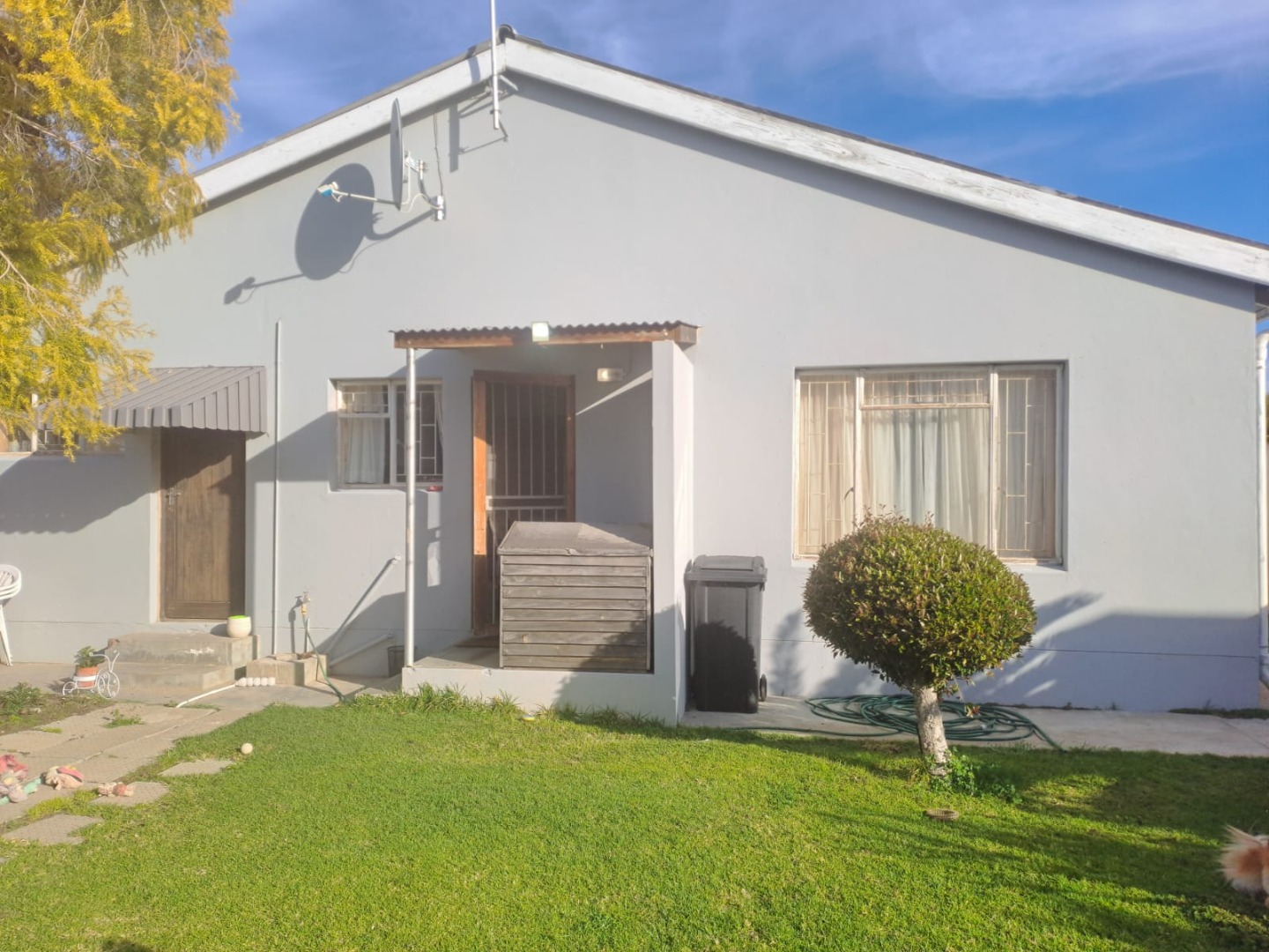 #Sole Mandate# : This property offers versatile living with three bedrooms and the potential for expansion. Inside the house you will find two bedrooms, both with built-in cupboards. The main bedroom has an en-suite bathroom fitted with a shower, toilet and basin, while the second bedroom is served by a separate bathroom with a bath, toilet and basin.