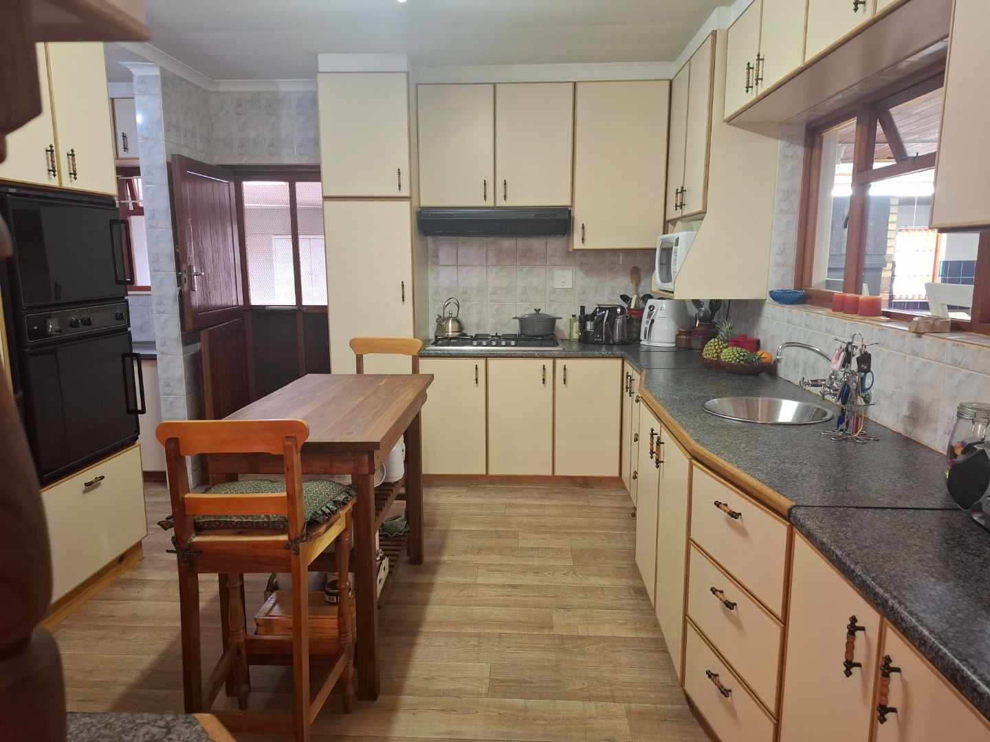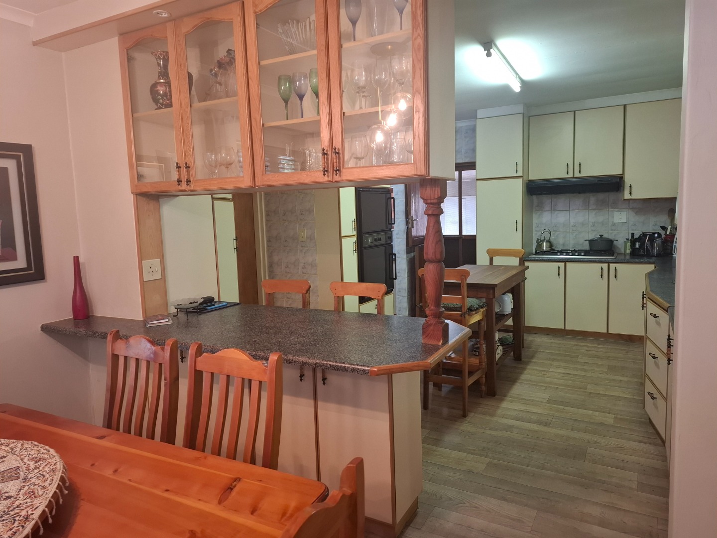 Discover this spacious family home situated in the desirable suburban area of Van Riebeeck Park, Worcester. This property offers a generous erf size of 1045.00 sqm and an expansive floor size of 700.00 sqm, providing ample space for comfortable living and entertaining. Van Riebeeck Park is known for its tranquil environment, offering residents a peaceful lifestyle within the vibrant city of Worcester, South Africa. The interior of this residence features a well-designed layout, including two inviting lounges and a dedicated dining room, perfect for family gatherings. The kitchen is both functional and spacious, equipped with cream cabinetry, dark speckled countertops, a built-in double oven, and a gas hob. A convenient breakfast bar connects the kitchen to the dining area, fostering an open-plan feel. Unique decorative elements, such as a distinctive water feature, pebble garden bed, and accent walls, add character and a touch of artistic flair to the living spaces. The home comprises four comfortable bedrooms and two bathrooms, catering to the needs of a growing family. Natural light floods the living areas through large windows, many fitted with wooden blinds and practical security bars, ensuring both privacy and peace of mind. The flooring throughout includes durable wood-look and laminate options, complementing the neutral wall tones. Step outside to a beautifully maintained garden, a true highlight of this property. It boasts lush green lawns, mature trees, and vibrant red flowering plants, all accessible via a charming curved paved pathway. The exterior also offers substantial parking solutions with four garages and an additional four parking spaces, providing convenience for residents and guests alike. This property presents a unique opportunity to own a substantial home in a sought-after location. Key Features: * 4 Bedrooms, 2 Bathrooms * 2 Lounges, 1 Dining Room * Spacious Kitchen with Double Oven and Gas Hob * Unique Interior Water Feature and Accent Walls * Lush, Well-Maintained Garden with Paved Pathway * 4 Garages and 4 Additional Parking Spaces * Generous 1045 sqm Erf Size * Suburban Location in Van Riebeeck Park, Worcester